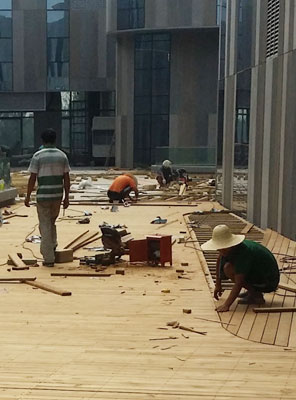 木質(zhì)座椅打造一片休憩的空間,布藝的抱枕,溫馨的燈光,給人內(nèi)心充盈的舒適和溫暖感覺!置身其中,放松心情,整個(gè)人都沉靜下來!自家若有個(gè)大庭院,木平臺的規(guī)劃讓花園更具人文氣息,木地板、木柵欄、木樓梯、木亭廊……起到藝術(shù)的裝飾作用,同時(shí)布置一些照明燈具,夜晚的庭院更顯沉穩(wěn)和品味。 防腐木產(chǎn)品誰來施工? 庭院剛施工完成,柳岸木的葡萄架開裂了?  開車去現(xiàn)場看了一下,做好的葡萄架木質(zhì)很松、裂口很大,可以確定開裂的原因:用的不是柳桉而是松木的一種,但是具體是哪一類松木也分辨不出來,裂縫產(chǎn)生主要原因是木頭沒有烘干,含的水分很多,經(jīng)過風(fēng)吹日曬,木頭中的水分蒸發(fā)發(fā)生收縮變形而產(chǎn)生裂縫,把木頭換掉基本是不可能了,唯一的解決辦法就是等裂縫穩(wěn)定以后用膩?zhàn)犹顫M重新做油漆。  事情解決了,正好業(yè)主也在,就問他簡單溝通了下,了解了一下情況,幫他做花園的是找上門來的一個(gè)施工隊(duì),柳桉防腐木地板3公分厚280元/平方,葡萄架報(bào)價(jià)500元/平方,就業(yè)主算了一筆賬,正宗柳桉木現(xiàn)在市場價(jià)按5000元一立方計(jì)算,不算損耗,一立方可以做33個(gè)平方地板,每平方是150元,木工安裝費(fèi)市場行情是60元/平方,油漆30元/平方,加上地板下的木楞50元/平方加起來就是290元/平方,再加上損耗和正常的公司利潤,280元/平方的柳桉防腐木地板怎么能做的出來呢